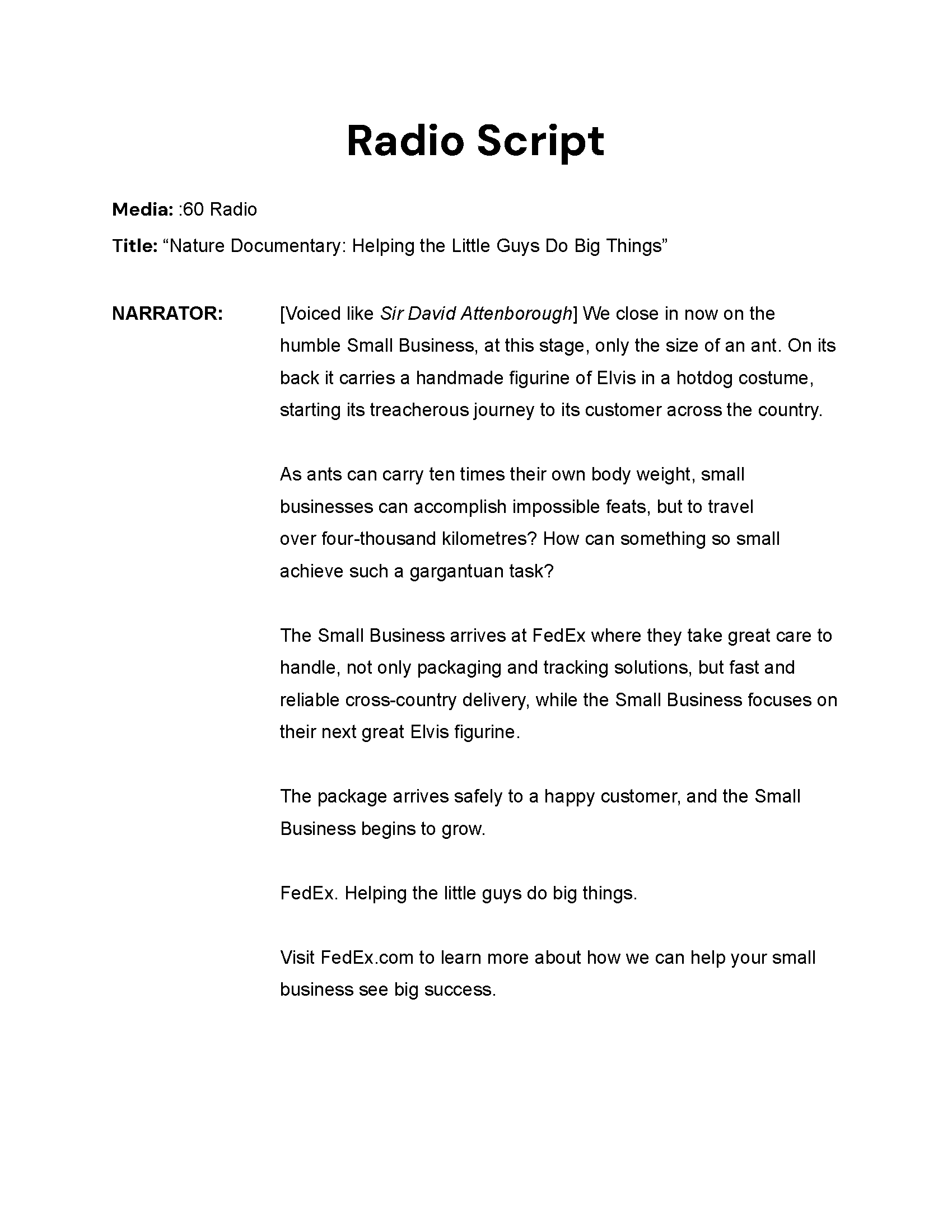 Objective: To raise awareness about FedEx’s shipping services for small businesses and the benefits for those looking to grow their small businesses.